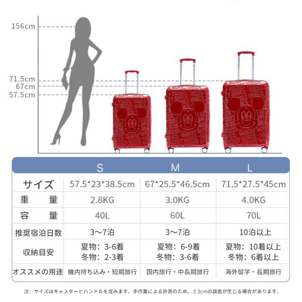 「ランキングNO.1」【90周年 数量限定】ディズニー ミッキーマウス スーツケース S/M/Lサイズ (40L/60L/70L) キャリーケース <U-12430>